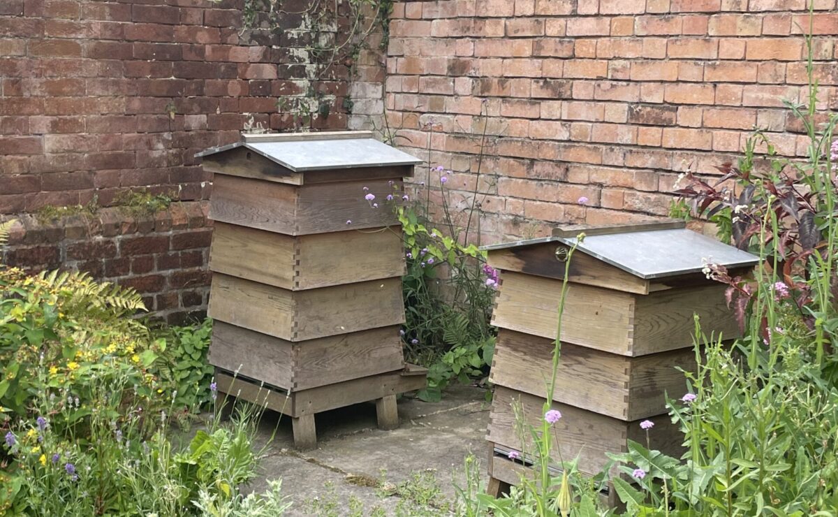 We welcome biodiversity within the garden. The greater the diversity the more beneficial it is to the garden’s health and productivity. We have several bug hotels, providing habitats for visiting insects and wildlife, helping to keep pests and diseases at bay. We have Biodiverse beds where wildflowers, weeds and herbage remain undisturbed, to attract pollinators and other beneficial insects. Bees play a key role in our garden by contributing to its biodiversity, helping to pollinate plants, and last but not least providing us with delicious honey! There are 7 bug hotels dotted around our garden, 2 biodiverse beds and 2 beehives. Have you spotted them all?