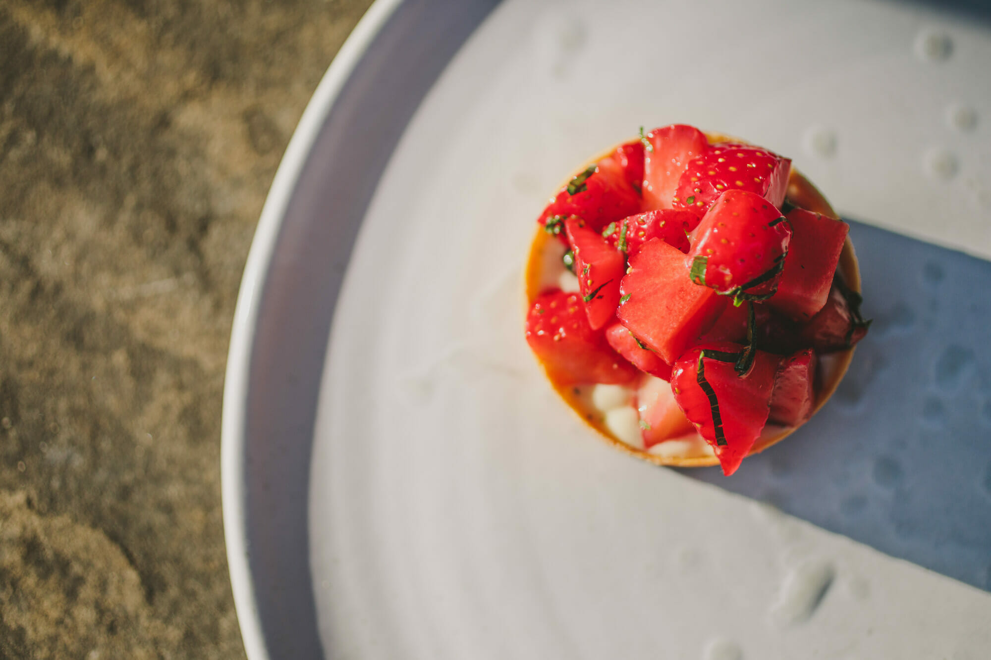 This summer Rob introduced a strawberry tart with lovage to the Peel’s menu (the lovage coming from the herb beds at the back door of the kitchen): “The tart is something we have been working on for a while as something that is constantly on but changes through the seasons, so after strawberry it could be blackcurrant then raspberry etc.”
